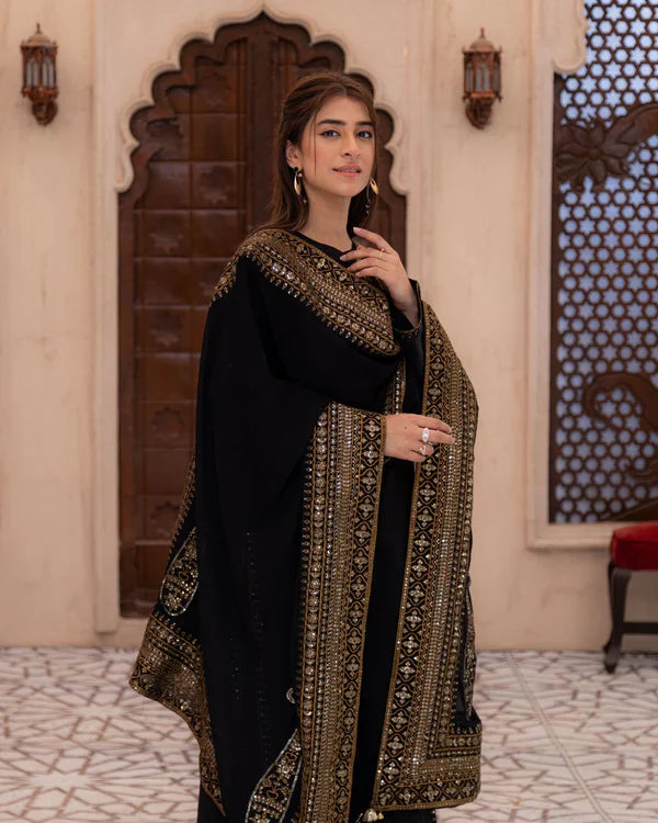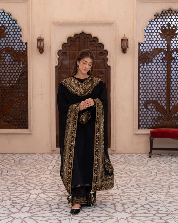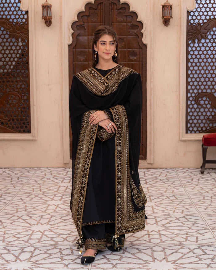 Black Mystique – Elevate your style with Black Mystique, a luxurious 3-piece suit crafted for the woman who embodies sophistication and grace. Made from premium lawn, this deep black ensemble is perfect for evening soirées, festive gatherings, and formal affairs.