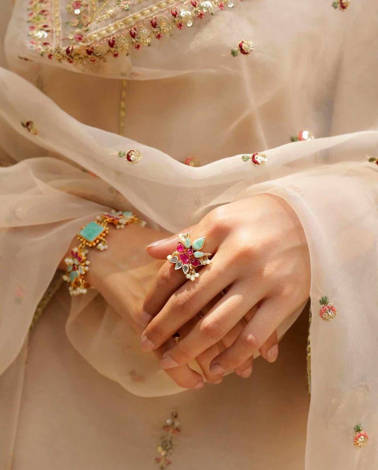 Details: Embroidery, Golden Embellishments, Shimmer Border