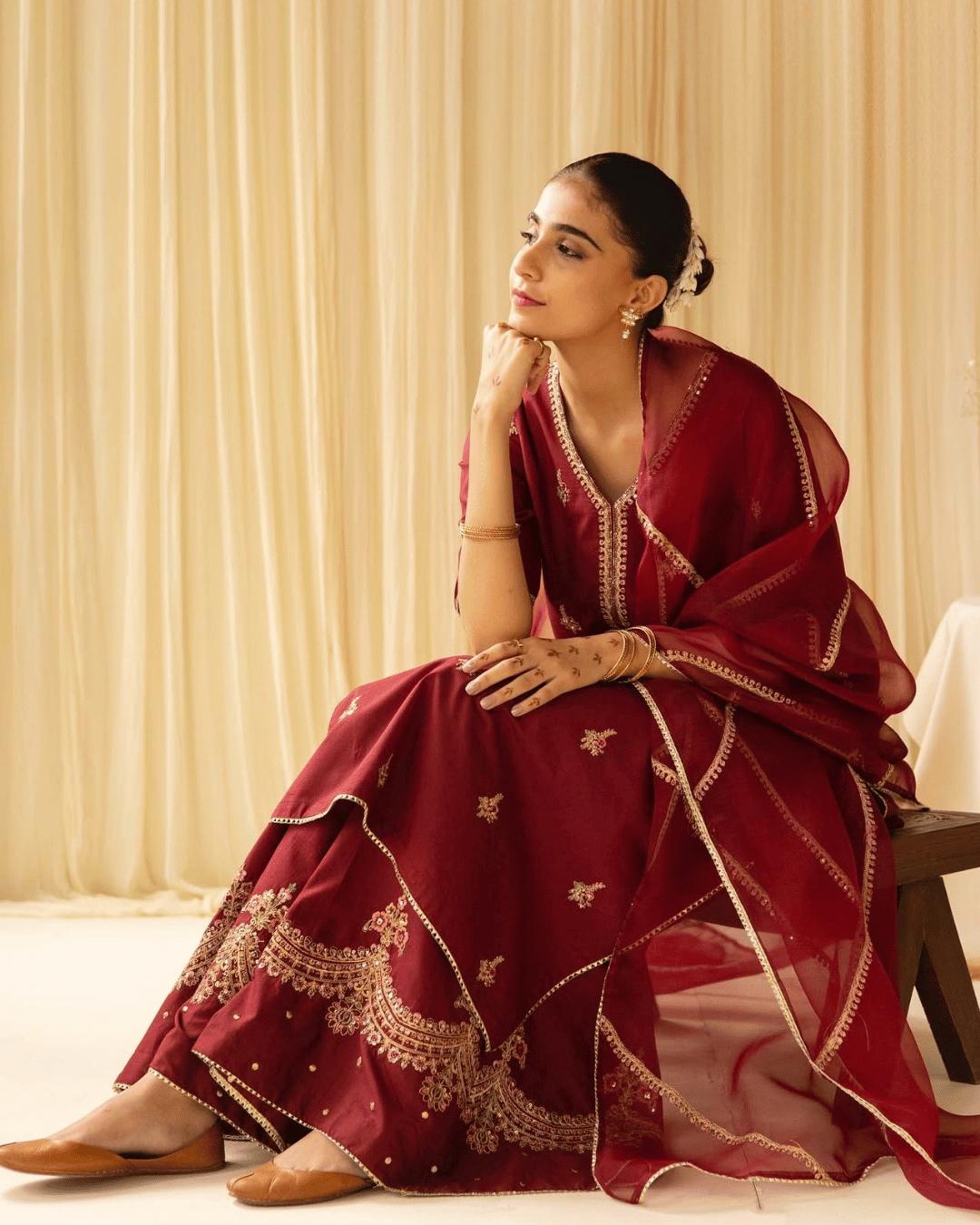 Color: Deep Maroon with Golden Embroidery